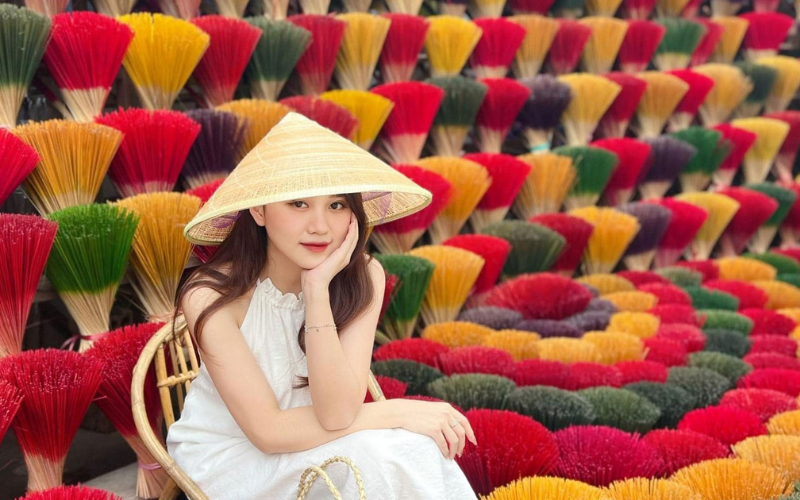 Đứng giữa những bó hương xoe tròn cùng màu sắc rực rỡ sẽ tạo cho bạn một background cực chất tô thêm nét đẹp cho những bức ảnh của bạn. Nếu ghé thăm Hưng Yên, hay nhớ đến làng hương Cao Thôn thử nhé, chắc chắn bạn sẽ thích.