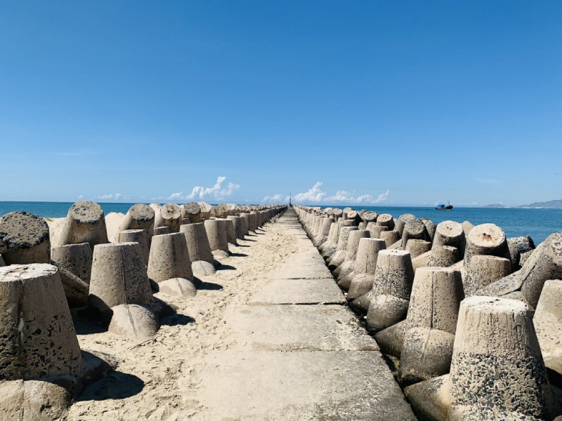 Từng con sóng vỗ nhẹ ôm vào bờ kè, xa xa là chiếc thuyền nhỏ của ngư dân. Cánh chim bói cá sà nhẹ xuống mặt nước biển trong xanh rồi bay vụt lên bầu trời cao. Tất cả kết hợp tạo nên khung cảnh thiên nhiên tuyệt đẹp chỉ có tại nơi đây.